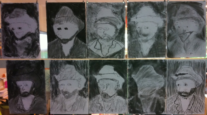 Hierbij nogmaals het zelfportret van Vincent van Gogh gebruikt, ditmaal opgedeeld in 35 fragmenten. De kinderen krijgen ieder een schilderijtje met het voorbeeld van een specifiek deel van het origineel