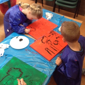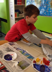 In groep 3 van de openbare school in Mierlo-Hout werd een workshop schilderen in de Cobra-stijl gegeven